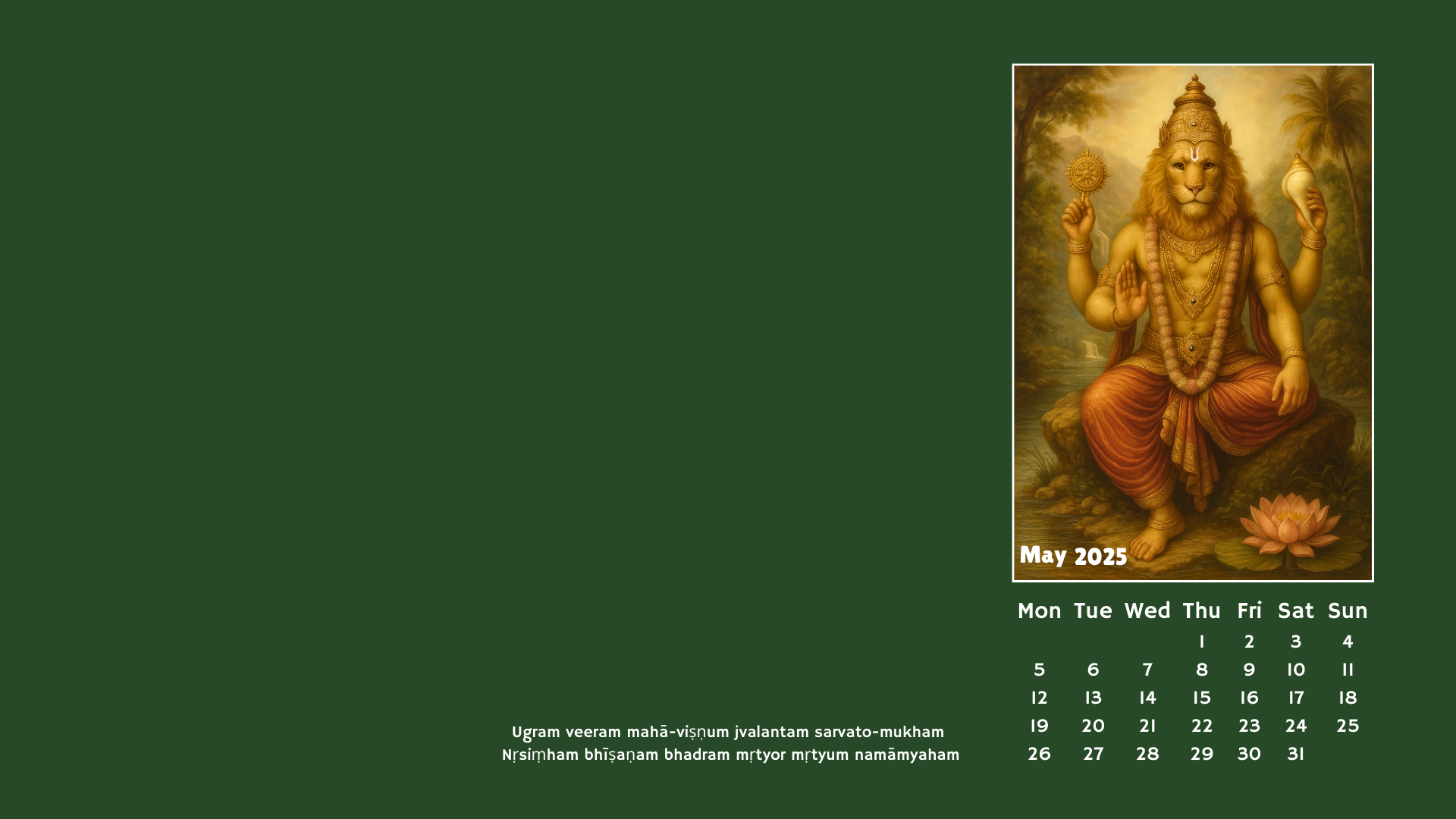 Get this Divine Lord Narasimha Wallpaper with May Calendar